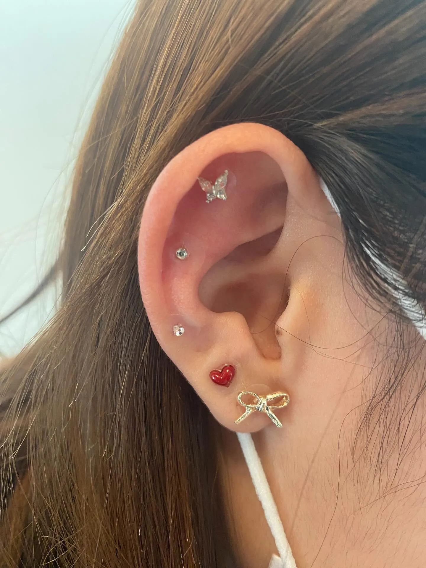 【腰痛・肩こり】耳つぼジュエリー💎 【腰痛・肩こり】耳つぼジュエリー💎今日は、肩こりや腰痛でお悩みのお客様がご来店くださいました✨大きいリボンがとっても可愛いので、オシャレも楽しめちゃいます🎀✨耳つぼジュエリーを活用して、心地よ…